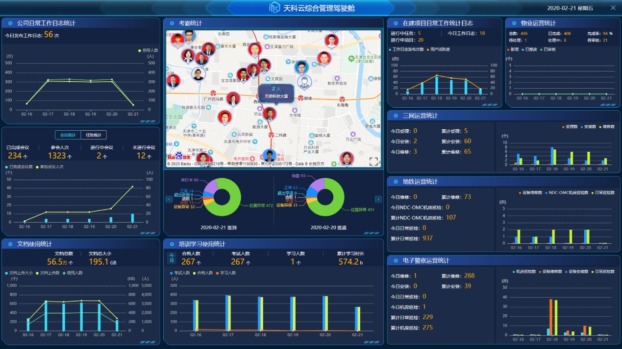因受新冠疫情的影響,天房科技公司自2月3日起開(kāi)始實(shí)施全員網(wǎng)絡(luò)化辦公模式,為更好的配合此模式的管理,公司基于自主研發(fā)的天科云、黨建云等平臺(tái)采用大數(shù)據(jù)技術(shù),開(kāi)發(fā)“天科云綜合管理駕駛艙”,將采集的數(shù)據(jù)形象化、直觀化、具體化,通過(guò)詳盡的指標(biāo)體系,實(shí)時(shí)反映公司各項(xiàng)工作執(zhí)行情況。在公司領(lǐng)導(dǎo)的統(tǒng)一安排下,軟件項(xiàng)目中心天科云團(tuán)隊(duì)積極克服新冠疫情帶來(lái)的不利影響,全力投入到此“駕駛艙”的研發(fā)工