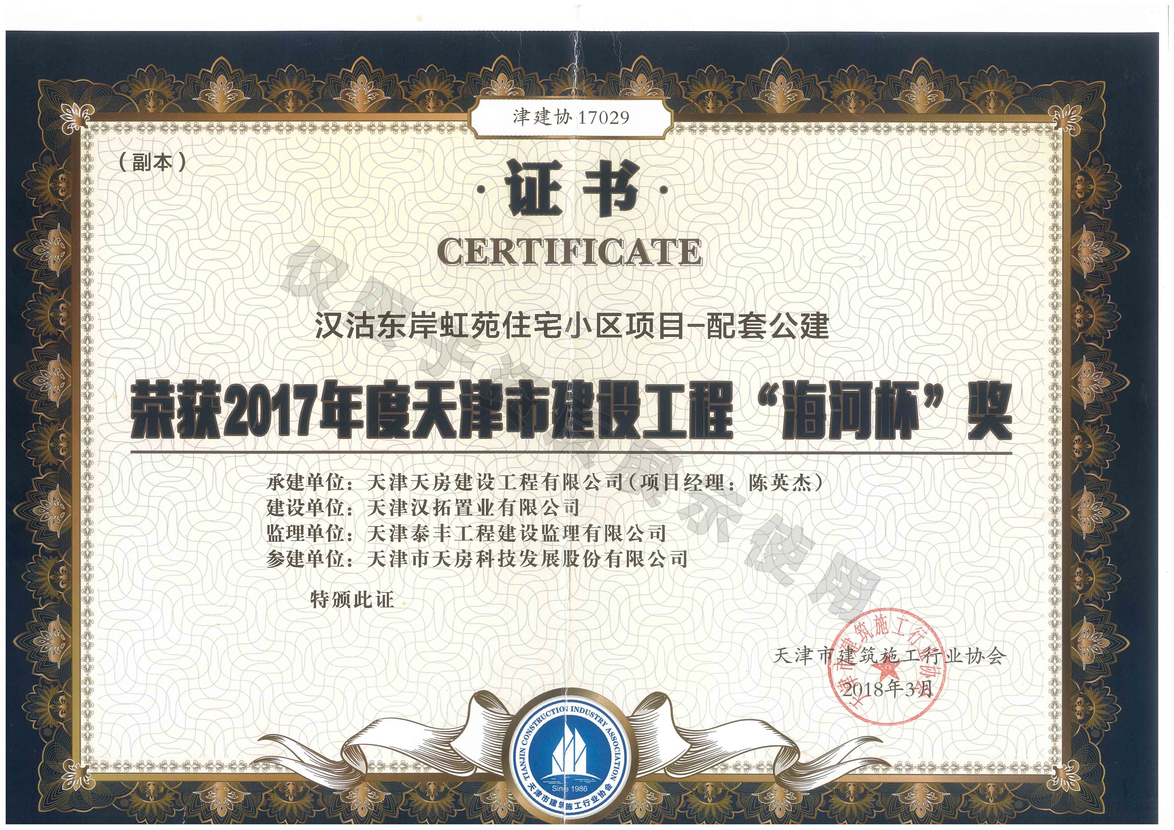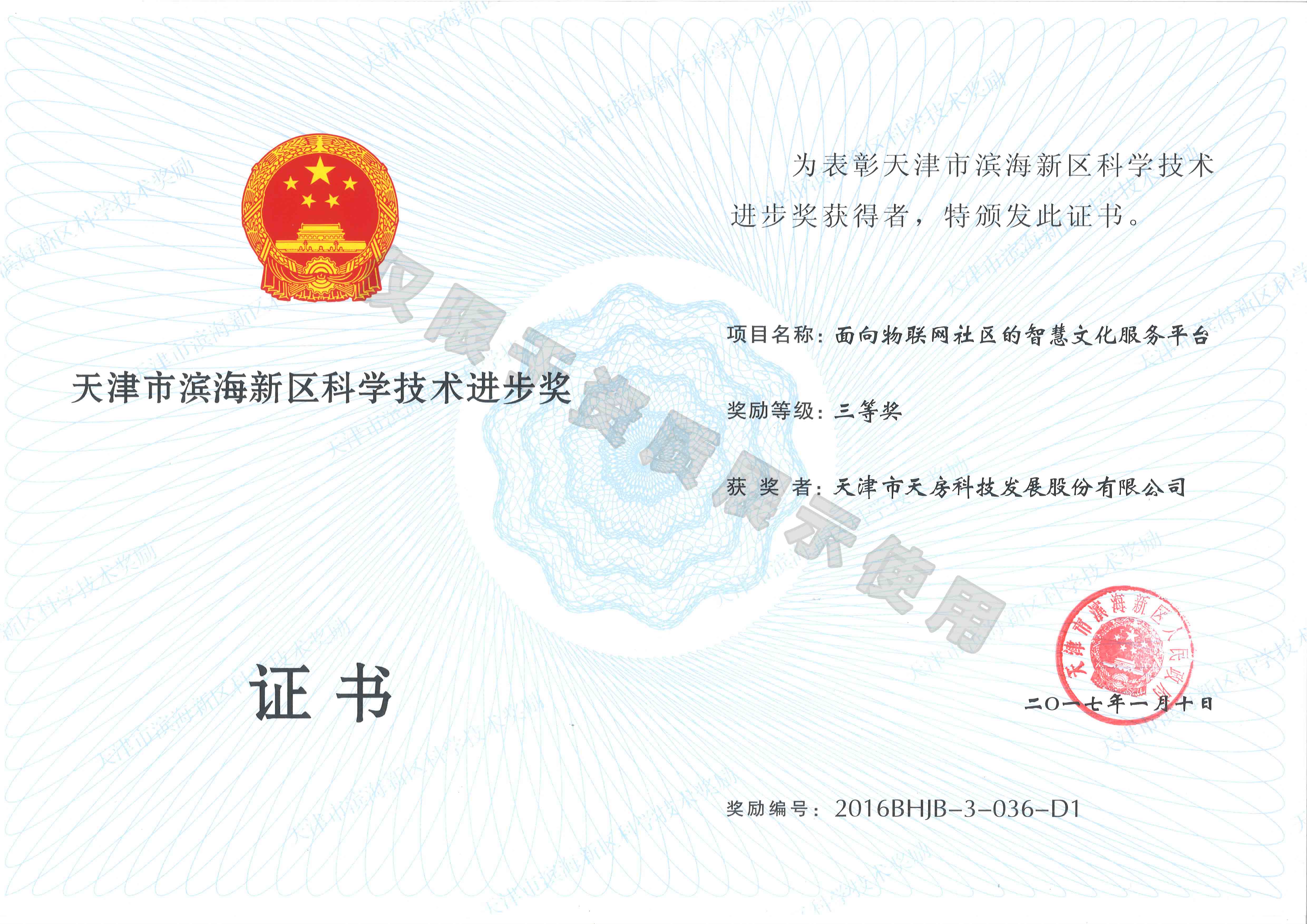 天津市濱海新區(qū)科學(xué)技術(shù)進(jìn)步獎三等獎