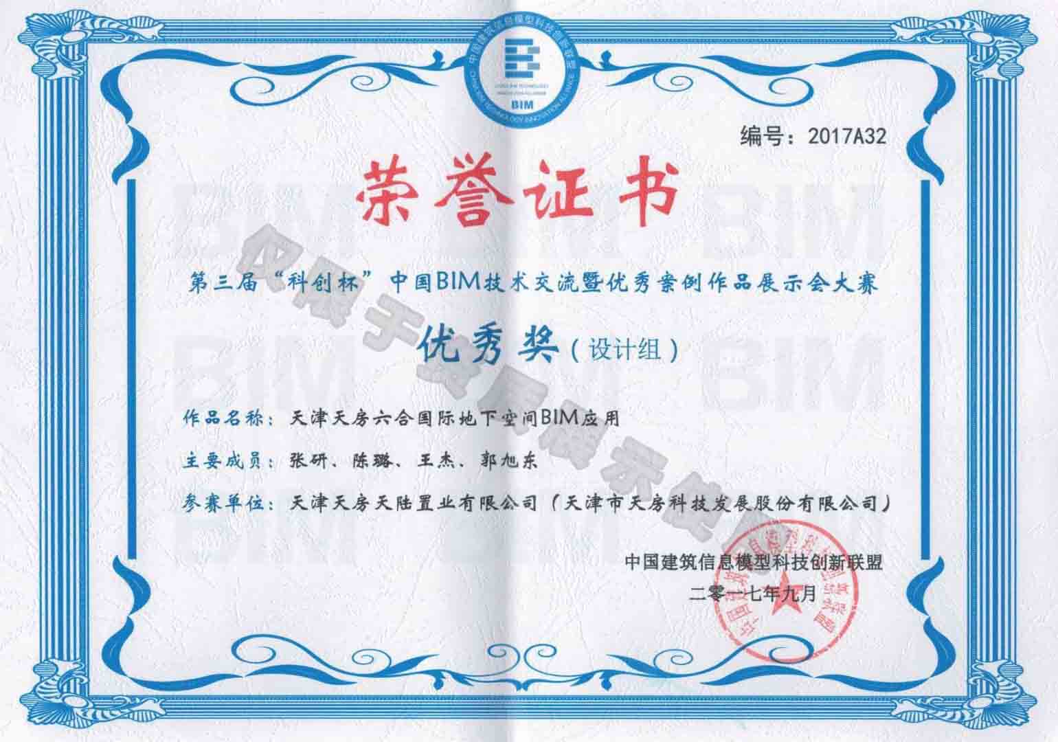 第三屆“科創(chuàng)杯”中國(guó)BIM技術(shù)交流暨優(yōu)秀案例作品展示會(huì)大賽優(yōu)秀獎(jiǎng)