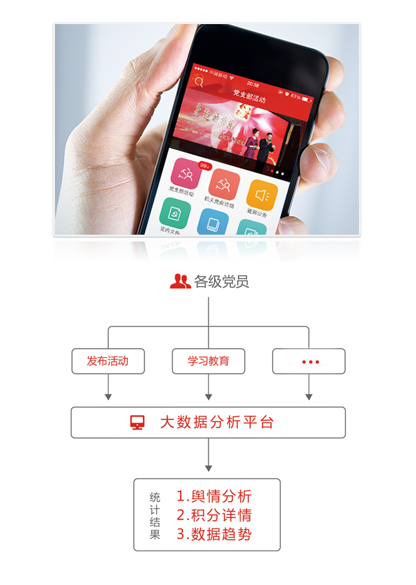 黨建云是遵循《中國(guó)共產(chǎn)黨章程》,結(jié)合基層黨建實(shí)際工作,在互聯(lián)網(wǎng)上為黨的各級(jí)黨組織和廣大黨員提供基層黨建工作管理、監(jiān)督、學(xué)習(xí)和交流的平臺(tái)。是面向全國(guó)各級(jí)黨組織開展日常黨務(wù)工作的網(wǎng)絡(luò)化管理平臺(tái),是基于互聯(lián)網(wǎng)的黨的方針政策宣傳與黨務(wù)信息發(fā)布的平臺(tái),是黨員與黨組織間以及黨群之間的信息共享與互動(dòng)交流的平臺(tái)。同時(shí)通過(guò)互聯(lián)網(wǎng)開展“兩學(xué)一做”學(xué)習(xí)教育,使基層黨建做到“看得見(jiàn),摸得著”。
